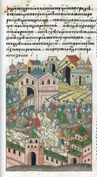 Keywords: Facial Chronicle - b.10, p.057 - Tokhtamysh at Moscow.jpg ru Разо ение осквы Тохтамышем в 1382 году ЛИЦЕВОЙ ЛЕТОПИС ЫЙ СВОД Люди же х истианские бывшие в го оде бегали по улицам туда и сюда ско о мечась толпами вопия сильно к ича и бия в г удь свою е было где избавление об ести и не было где сме ти избежать и не было где от ост ия меча ук ыться Оскудел князь и воеводы их и все воинство их ист ебилось и о ужие их до конца исчезло http //www akteon-elib ru/LITsIeVOI-LIeTOPISNYI-SVOD-Russkaya-letopisnaya-istoriya-Kniga-10/ 14 century 16 anonymous PD-Old Facial Chronicle v 7 - Ostermanovskiy 2-y tom 1378-1424 Files uploaded by Shakko from various sources Historical images of Moscow Moscow in art Conflicts in 1382 1382 in Russia Tokhtamysh Facial Chronicle v 7 - Ostermanovskiy 2-y tom 1378-1424 |