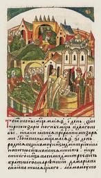 View Original:Facial_Chronicle_-_b.10,_p.391_-_Birth_of_Konstantin_Dmitrievich_of_Uglich.jpg (1783x3124)