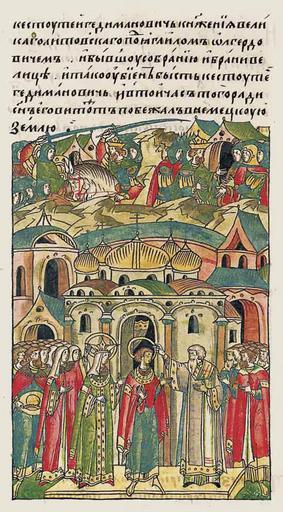 | Keywords: Facial Chronicle - b.10, p.463 - Wedding of Vasily I and Sofia Vitovtovna.jpg ЛИЦЕВОЙ ЛЕТОПИС ЫЙ СВОД И великий князь Василий Дмит иевич взял ее в жены после К ещения месяца янва я в 9 день в день памяти святого мученика Полиекта Витовт тогда был в немецкой земле Он бежал из Литвы после того как был убит отец его Кестутий Отец его Кестутий Гедиминович задумал отнять великое княжение Литовское у Ягайло Ольге довича Была великая битва и убит был Кестутий Гедиминович и сын его Витовт в тот же час бежал в немецкую землю http //www akteon-elib ru/LITsIeVOI-LIeTOPISNYI-SVOD-Russkaya-letopisnaya-istoriya-Kniga-10/ 256 century 16 anonymous PD-Old Facial Chronicle v 7 - Ostermanovskiy 2-y tom 1378-1424 Files uploaded by Shakko from various sources 1391 in Russia Sofia Vitovtovna Weddings in medieval manuscripts Russia Vasily I of Moscow in miniature |
