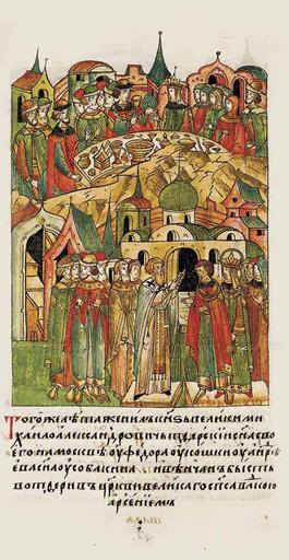 | Keywords: Facial Chronicle - b.10, p.495 - Wedding of Fedor Mikhailovich of Mikulin.jpg ЛИЦЕВОЙ ЛЕТОПИС ЫЙ СВОД В том же году женил великий князь ихаил Александ ович Тве ской сына своего в оскве на доче и Федо а Кошки Анд еева сына Собакина и обвенчан был владыкой А сением в Тве и в це кви великого Спаса http //www akteon-elib ru/LITsIeVOI-LIeTOPISNYI-SVOD-Russkaya-letopisnaya-istoriya-Kniga-10/ 256 century 16 anonymous PD-Old Facial Chronicle v 7 - Ostermanovskiy 2-y tom 1378-1424 Files uploaded by Shakko from various sources Weddings in medieval manuscripts Russia House of Romanov before 1613 Princes of Mikulin |