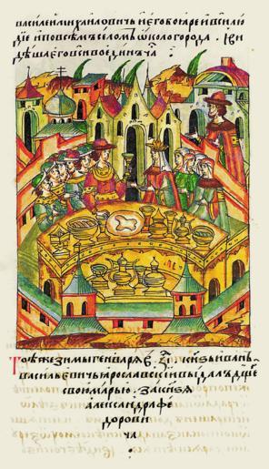 Keywords: Facial Chronicle - b.12, p.292 - Wedding of Alexandr Fedorovich of Mikulin.gif В ту же зиму месяца янва я в 17 день князь Иван Васильевич Я ос- лавский выдал свою дочь а ию за князя Александ а Феодо о- вича http //www runivers ru/bookreader/book480190/ page/7/mode/1up century 16 anonymous PD-Old Files uploaded by Shakko from various sources Facial Chronicle v 7 - Ostermanovskiy 2-y tom 1378-1424 1412 in Russia Weddings in medieval manuscripts Russia Princes of Yaroslavl Princes of Mikulin |