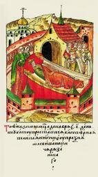Keywords: Facial Chronicle - b.12, p.065 - Death of Evpraksia of Ryazan.gif В ту же зиму месяца декаб я в 5 день в суб- боту п еставилась благове ная великая княгиня Евп аксия жена князя Олега Ива- новича Рязанского http //www runivers ru/bookreader/book480190/ page/7/mode/1up century 16 anonymous PD-Old Files uploaded by Shakko from various sources Facial Chronicle v 7 - Ostermanovskiy 2-y tom 1378-1424 Death in medieval miniatures Russia 1404 in Russia Oleg Ivanovich of Ryazan |