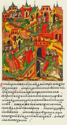 Keywords: Facial Chronicle - b.13, p. 176 - Yuri Dmitrievich of Zvenigorod's death.gif Князьям же Дмит иям находящимся тогда во Владими е п ишла весть о том что их отец князь Ю ий скончался а их ста ший б ат князь Василий сел на вели- ком княжении в о- скве Потом же и он сам п ислал к ним поведав о сме ти отца о своем здо о- вье и княжении; они же отвечали «Пусть не захотел Бог что- бы княжил наш отец а тебя и сами не хотим» http //www runivers ru/bookreader/book480451/ page/25/mode/1up century 16 anonymous PD-Old Facial Chronicle v 4 - Golytsinskiy tom 1114-1247; 1425-1472 Death in medieval miniatures Russia Files uploaded by Shakko from various sources Yury of Zvenigorod 1434 in Russia Feudal war in Muscovy 1425-1453 Vasily Kosoy Dmitry Shemyaka Dmitriy Yuryevich Krasniy |