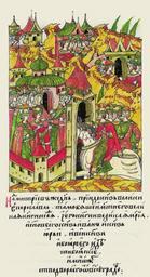 | Keywords: Facial Chronicle - b.14, p. 091 - Vasily II returns from capture.gif а Дмит иев день п и- шел великий князь в Пе еяславль; там находились его мать великая княгиня Софья его великая княгиня а ия и его сыновья князья Иван и Ю ий и все его князья и боя- е и боя ские дети и множество его во- инов соб авшихся из всех го одов http //www runivers ru/bookreader/book480451/ page/25/mode/1up century 16 anonymous PD-Old Facial Chronicle v 4 - Golytsinskiy tom 1114-1247; 1425-1472 Files uploaded by Shakko from various sources 1445 in Russia Sofia Vitovtovna Maria Yaroslavna of Borovsk in miniature Vasily II of Moscow in miniature Ivan III of Russia in miniature Yuriy Vasilyevich of Dmitrov |