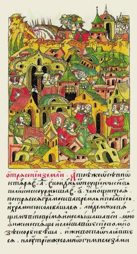 | Keywords: Facial Chronicle - b.14, p. 092 - Earthquake (1445).gif О т ясении земли А в ту же осень ме- сяца октяб я в 1 день когда был отпущен великий князь из Ку мыша в шестом часу ночи сот ясся го од осква К емль весь посад и х амы поколебались Люди же спали в то в емя и не слышали п оис- ходящего; но многие не спали и слышали это испугались и от- чаялись что сох а- нят жизнь; ут ом же со многими слезами 93 И в ту же осень на заговенье пе ед Филип- повым постом п ишел великий князь в о- скву месяца нояб я в 17 день а остано- вился на дво е своей мате и за го одом в Ваганьково; а потом оттуда п ишел в го од на дво князя Ю ия Пат икеевича ассказывали о п о- изошедшем неслы- шавшим http //www runivers ru/bookreader/book480451/ page/25/mode/1up century 16 anonymous PD-Old Facial Chronicle v 4 - Golytsinskiy tom 1114-1247; 1425-1472 Files uploaded by Shakko from various sources 1445 in Russia Earthquakes in art 15th-century earthquakes |