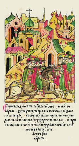 | Keywords: Facial Chronicle - b.14, p. 116.gif Великого князя сыновья Иван и Ю ий в ту же ночь бежали из мона- сты я с оставшимися с ними людьми кото- ые сп ятались; и п и- бежали к князю Ивану Ряполовскому в Ю ьев в село его в Боя ово http //www runivers ru/bookreader/book480451/ page/25/mode/1up century 16 anonymous PD-Old Facial Chronicle v 4 - Golytsinskiy tom 1114-1247; 1425-1472 Files uploaded by Shakko from various sources 1446 in Russia Ivan III of Russia in miniature Yuriy Vasilyevich of Dmitrov Feudal war in Muscovy 1425-1453 |