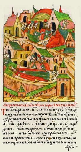 Keywords: Facial Chronicle - b.15, p. 408 - Yuri Vasilyevich of Dmitrov's death.gif О п еставлении князя Ю ия Васильевича В том же месяце в 12 день в суб- боту в 10 час дня скончался в о- скве благове ный и х истолюбивый князь Ю ий Василье- вич 31 года и 7 ме- сяцев и 22 дней А в то в емя князя великого не было ни мате и его ни б атьев его Все были в Росто- ве потому что тогда там немощна была их мать великая княгиня а ия http //www runivers ru/bookreader/book480451/ page/25/mode/1up century 16 anonymous PD-Old Facial Chronicle v 8 - Shumilovskiy tom 1425; 1478-1533 Death in medieval miniatures Russia Files uploaded by Shakko from various sources 1473 in Russia Yuriy Vasilyevich of Dmitrov Maria Yaroslavna of Borovsk in miniature |