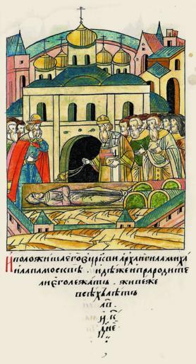 View Original:Facial_Chronicle_-_b.17,_p._115_-_Burials_of_Ivan_the_Young.gif (823x1524)