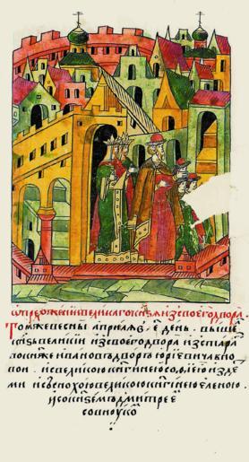 Keywords: Facial Chronicle - b.17, p. 191.gif О пе еходе великого князя из своего дво а В ту же весну ап еля в 5 день пе ешел вели- кий князь из своего ста ого дво а в но- вый дво князя Ивана Ю ьевича вместе с великой княгиней Софьей с детьми и со снохой великой княгиней Еленой и с внуком князем Дмит ием; http //www runivers ru/bookreader/book481263/ page/5/mode/1up 16th-century anonymous PD-Old Facial Chronicle v 8 - Shumilovskiy tom 1425; 1478-1533 Files uploaded by Shakko from various sources Ivan III of Russia in miniature Sophia Palaiologina Elena Voloshanka of Moldavia Dmitriy Ivanovich the Grandson in miniature