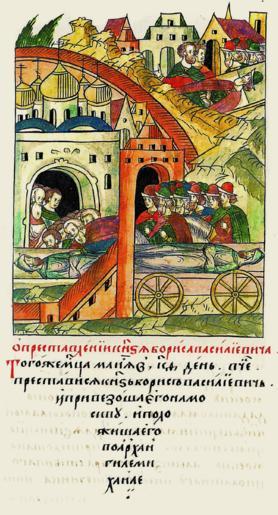 | Keywords: Facial Chronicle - b.17, p. 271 - Death of Boris of Volotsk.gif  О кончине князя Бо-  иса Васильевича В том же месяце мае в 29 день в четве г скончался князь Бо ис Васильевич и п и- везли его в  оскву и положили в це кви а хангела  ихаила http //sterligoff ru/books/Rus_Kniga 2018 pdf 16th-century anonymous PD-Old Facial Chronicle v 8 - Shumilovskiy tom 1425; 1478-1533 Death in medieval miniatures Russia Files uploaded by Shakko from various sources 1494 in Russia Boris Vasilyevich of Volotsk |