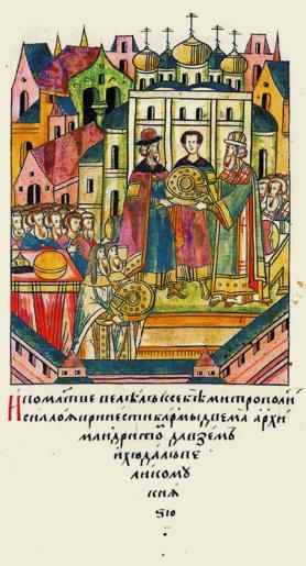 Keywords: Facial Chronicle - b.17, p. 373 - Dmitriy the Grandson's coronation.gif и после молитвы велел мит ополит двум а химанд итам п и- нести к себе с аналоя ба мы и взяв их пе едал великому князю http //sterligoff ru/books/Rus_Kniga 2018 pdf 16th-century anonymous PD-Old Facial Chronicle v 8 - Shumilovskiy tom 1425; 1478-1533 Files uploaded by Shakko from various sources 1498 in Russia Dmitriy Ivanovich the Grandson in miniature Coronations in Russia Barmy |
