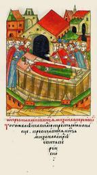 | Keywords: Facial Chronicle - b.17, p. 058 - Death of Michael of Vereysk.gif О кончине князя и- хаила Ве ейского В том же году в т етью не- делю после Пасхи скончался князь ихаил Анд еевич Ве ейский http //www runivers ru/bookreader/book481263/ page/5/mode/1up 16th-century anonymous PD-Old Facial Chronicle v 8 - Shumilovskiy tom 1425; 1478-1533 Death in medieval miniatures Russia Files uploaded by Shakko from various sources 1486 in Russia Mikhail Andreevich of Vereya | ||||