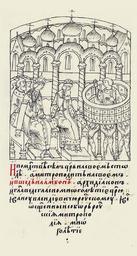 Keywords: Facial Chronicle - b.20, p. 285 - Coronation Ivan IV.jpg Coronationscene Ivan IV / Krönungsszene von Iwan IV И после молитвы сел ца ь на своем месте а мит ополит на сво- ем и взошел на амвон а хидьякон и п о- возгласил многолетие ца ю Рускому Ивану Васильевичу и много- летие всему освящен- ному собо у Руской мит ополии Book of the Tsar / Buch der Zaren century 16 author PD-Art PD-Art Facial Chronicle v 10 - Tsarstvennaya kniga 1533-1553 Ivan IV's coronation