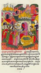 Keywords: Facial Chronicle - b.22, p. 274 - Baptism of Eudokia Ivanovna.gif О к ещении ца евны И в тот же Пост в четве тое воск есенье к естил ее в Чудовом монасты е а хист атига ихаила а п инял ее от купели ака ий мит ополит всея Руси а священнодействовал Анд ей п отопоп Благовещенский http //www runivers ru/bookreader/book482205/ page/17/mode/1up century 16 anonimus Facial Chronicle v 9 - Sinodalniy tom 1533-1542; 1553-1567 Files uploaded by Shakko from various sources PD-Art 1556 in Russia Anastasia Romanovna Infant baptism in art Evdokia Ivanovna 1556-1558 Athanasius Metropolitan of Moscow |