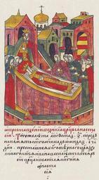 | Keywords: Facial Chronicle - b.23, p. 251 - Death of Anastasia Romanovna.jpg Лицевой летописный свод О п еставлении великой ца ицы Анастасии В том же году в августе в седьмой день в с еду на память святого мученика Диомида в пятый час дня п еставилась благове ного ца я и великого князя Ивана Васильевича всея Руси ца ица и великая княгиня Анастасия http //www runivers ru/bookreader/book482205/ page/17/mode/1up century 16 anonimus Facial Chronicle v 9 - Sinodalniy tom 1533-1542; 1553-1567 Death in medieval miniatures Russia Files uploaded by Shakko from various sources PD-Art Fires in Moscow Anastasia Romanovna 1560 in Russia |