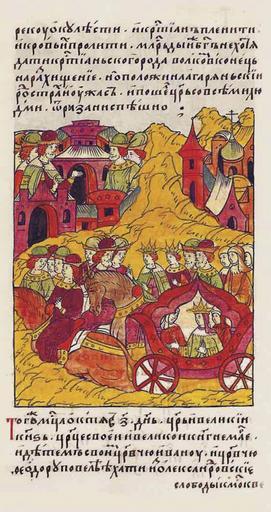 | Keywords: Facial Chronicle - b.23, p. 436.jpg Лицевой летописный свод В том же месяце октяб е в 7 день ца ь и великий князь ца ице своей и великой княгине а ье и детям сво- им ца евичу Ивану и ца евичу Федо у повелел ехать из Алек- санд овской слободы к оскве http //sterligoff ru/books/Rus_Kniga 2023 pdf century 16 anonimus Facial Chronicle v 9 - Sinodalniy tom 1533-1542; 1553-1567 Files uploaded by Shakko from various sources PD-Art Ivan Ivanovich Maria Temryukovna Feodor I of Russia in art | ||||
