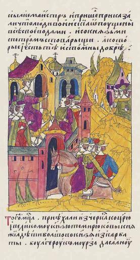 | Keywords: Facial Chronicle - b.23, p. 097.jpg В том же месяце п иехали из Че касс к ца ю и великому князю дети ста шего князя Тем юка из Каба ды Булге ук-му за и Салнук- му за бить челом чтобы госуда ь их пожаловал своих холопов и защитил их от Шевкалского госуда я; а с ними п иехал посланник госуда я служилый тата ин Байбе а http //www runivers ru/bookreader/book482205/ page/17/mode/1up century 16 anonimus Facial Chronicle v 9 - Sinodalniy tom 1533-1542; 1553-1567 Files uploaded by Shakko from various sources PD-Art House of Cherkasskiy 1558 in Russia |