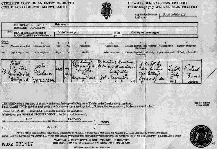 Keywords: Fact Findings, certified copy of an entry of death for John Osborn Williams.JPG en Fact Findings in relation to The Public Enquiry into the Affairs of the Labrador Development Company Ltd held in St John ™s Newfoundland 1945 regarding logging operations in Port Hope Simpson Newfoundland and Labrador Canada circ 1934-1946 in context of the two unsolved deaths 3 February 1940 of Arthur Eric Williams eldest son of the Owner John Osborn Williams and Erica D'Anitoff Williams Eric's infant daughter Further information Tombstone The British Government ™s Cover-Up Port Hope Simpson Newfoundland and Labrador Canada Part 3/3 What was really going on behind the scenes For the first time de-classified official British Government papers shine new light on amongst other things Government mis-management as knowledge hidden by an incongruous granite tombstone in Port Hope Simpson Newfoundland Labrador Canada marked the starting point for this unique history of development of a logging settlement in southern Labrador Llewelyn Pritchard M A ISBN-13 978-1468019469 ISBN-10 1468019465 VSO Labrador Clues Voluntary Service Overseas VSO in Newfoundland and Labrador Canada 1960-70 Have you ever thought about helping other people not as fortunate as yourself Well that is exactly what 53 young 18 “19 year olds mainly from the UK set out to do from 1960-70 Turn the clock forward 33 years and discover what is still going on today A true story about the current on-going search for the remaining 7 / 53 Voluntary Service Overseas VSO 18 year olds who worked in the schools of the small coastal communities of Labrador Newfoundland Canada 1960-70 Llewelyn Pritchard MA ISBN-13 978-1468021097 ISBN-10 1468021095 Friends across the Miles VSOs - an important part of Labrador Education History Voluntary Service Overseas Newspaper and magazine articles about the work of the Voluntary Service Overseas V S O teachers in Labrador Newfoundland Canada 1960 “ 70 when 18 year old students mainly from the United Kingdom taught in the schools of the Labrador coastal settlements Llewelyn Pritchard M A ISBN-13 978-1468022094 ISBN-10 1468022091 Labrador Wilderness Newfoundland and Labrador Canada Refresh your body mind and soul Llewelyn Pritchard MA ISBN-13 978-1468026283 ISBN-10 1468026283 Legacy Port Hope Simpson Town Newfoundland and Labrador Canada is based on previously classified British Government documents seen here for the first time It highlights the inescapable fact that 2 unexplained deaths still tarnish the great history of sustainable development achieved by the people of Port Hope Simpson Town in South East Labrador Canada Llewelyn Pritchard M A ISBN-13 978-1468162851 ISBN-10 1468162853 Port Hope Simpson Clues Newfoundland and Labrador Canada If you like solving puzzles and getting to grips with a real mystery why not join Llewelyn as he penetrates into the fascinating murky and sordid past history of Port Hope Simpson a coastal logging town on the east coast of wilderness Canada as he uncovers a great deal more than he bargained for Llewelyn Pritchard M A ISBN-13 978-1468019339 ISBN-10 1468019333 Port Hope Simpson Historic Logging Town in Canada is located on the south side of the Alexis an excellent salmon river in southern Labrador It was initially founded in 1934 as a logging camp and was named after the English Commissioner of Natural Resources and Acting-Commissioner of Justice Sir John Hope Simpson This community has great natural assets nearby A full range of visitor services are ready to make your stay comfortable and enjoyable Llewelyn Pritchard MA ISBN-10 1468014722 ISBN-13 9781468014723 Port Hope Simpson Mysteries Newfoundland and Labrador Canada Oral History Evidence and Interpretation Read about the original Oral History interview with Mrs Kathleen Squire formerly James known as Bunty or Bunty James who was the lifelong friend of Katie Doreen Illsley Williams daughter of J O Williams owner of The Labrador Development Company Ltd which conducted logging operations in Port Hope Simpson 1934 “ 1945 Llewelyn Pritchard M A ISBN-13 978-1468019650 ISBN-10 1468019651 Port Hope Simpson Off the Beaten Path - follow the Labrador Coastal Drive Route 510 in Newfoundland Labrador Canada and discover the Town ™s Pit Props Politics Prosperity heroic Struggle of sustainable development towards a better future 1934-2002 Llewelyn Pritchard M A ISBN-13 978-1468014723 ISBN-10 1468014722 The Port Hope Simpson Diaries1969 - 70 Vol 1 Newfoundland and Labrador Canada Summit Special Learn what it's like to be dropped off in what feels like the middle of nowhere when you are straight out of Grammar School in the UK Ernie Pritchard ISBN-13 978-1468020106 ISBN-10 1468020102 The Port Hope Simpson Diaries 1969 - 70 Vol 2 Newfoundland and Labrador Canada Summit Special The original diaries of Ernie Pritchard - written as a way of helping him adapt to his new surroundings when he was 18 years of age on Voluntary Service Overseas from 1969 to 1970 in Port Hope Simpson Labrador Newfoundland Canada Ernie Pritchard ISBN-13 978-1468020939 ISBN-10 1468020935 Rooted Forever in History consists of Llewelyn Pritchard ™s original Research Notes about previously classified British Government documents regarding the troubled History of Port Hope Simpson Newfoundland and Labrador Canada from 1934 “ 1947 Llewelyn Pritchard M A ISBN-13 9781468172270 SBN-10 1468172271 The Port Hope Simpson Challenge The plot thickens If you like climbing high mountains get-rich-quick schemes hoary tales mysteries political corruption and intrigue problem-solving puzzles or if you just fancy an extremely difficult challenge then please read on Llewelyn Pritchard M A ISBN-13 978-1468016468 ISBN-10 1468016466 by Llewelyn Pritchard MA 2015-08-08 Public Record Office Public Record Office other versions cc-zero Uploaded with UploadWizard Port Hope Simpson Newfoundland and Labrador John Hope Simpson John Osborn Williams Ogmore-by-Sea Southerndown Newfoundlan