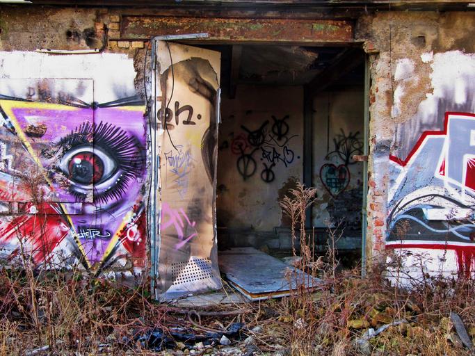 Keywords: factory building old lapsed hauswand ruin leave lost places industrial building leipzig plagwitz wall painting