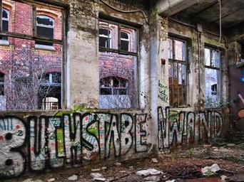 Keywords: factory building old lapsed hauswand ruin leave lost places industrial building leipzig plagwitz wall painting