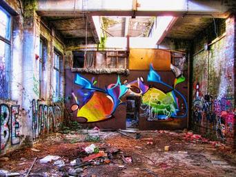 Keywords: factory building old lapsed hauswand ruin leave lost places industrial building leipzig plagwitz wall painting
