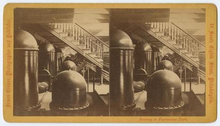 Keywords: stereographs philadelphia fairmount water works fairmountwaterworks james cremer jamescremer machinery old mill house oldmillhouse public utilities publicutilities View of the interior of the Old Mill House at the Fairmount Water Works in Philadelphia, ca. 1870. Accession number: P.2011.47.1193 View of the interior of the Old Mill House at the Fairmount Water Works in Philadelphia, ca. 1870. Accession number: P.2011.47.1193 |
