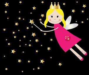 Keywords: fairy princess girl child cute art illustration wings wand magic wand black background stars gold golden pretty flying