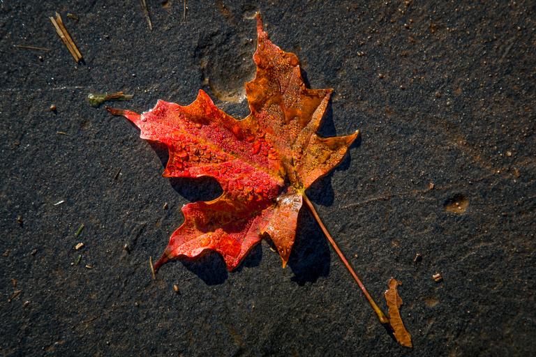 Keywords: fall leaf one nature dew wet autumn
