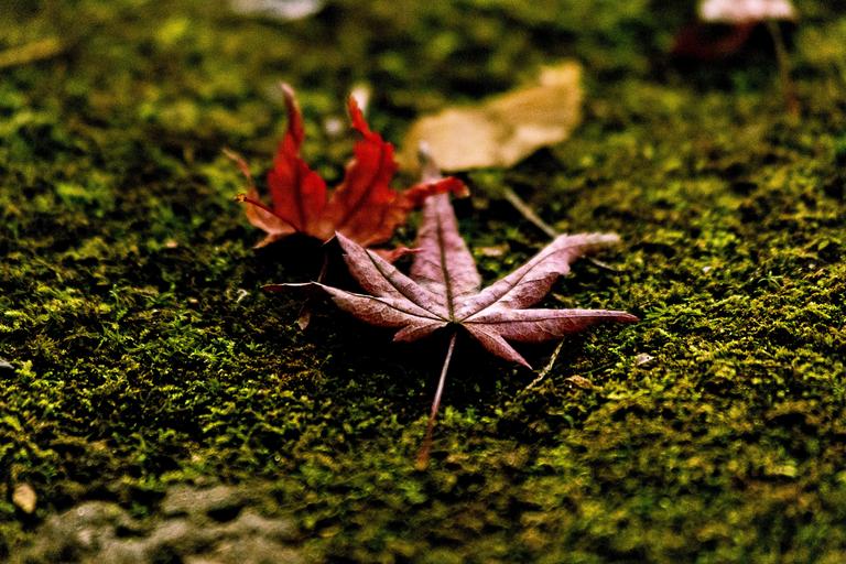 Keywords: fallen leaves moss autumnal leaves leaf autumn japan fall of japan natural dead leaves