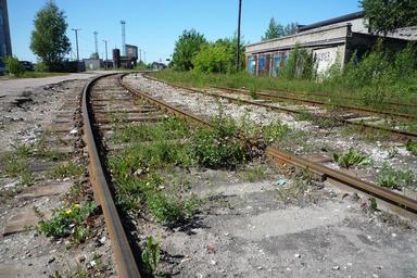 Keywords: fallow land gleise seemed railway railroad tracks railway tracks track bed rail traffic railway rails city wasteland