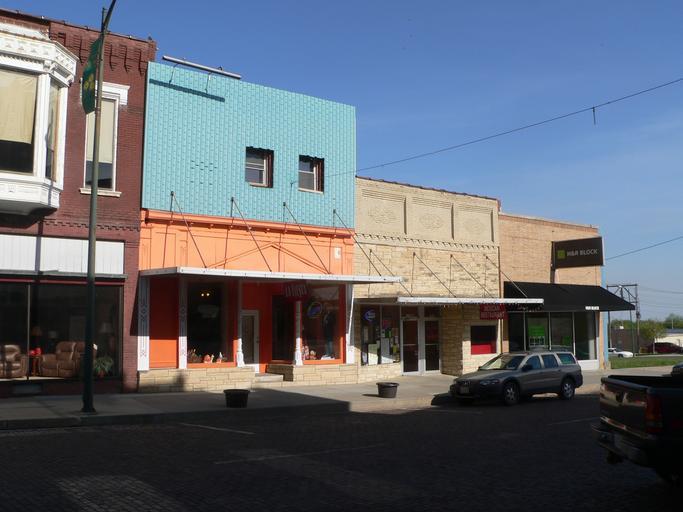 | Keywords: Falls City, Nebraska 1512-1514-1516-1518 Stone 1.JPG en East side of Stone Street between 15th and 16th Streets in Falls City Nebraska The building with the oriel window partially visible at left is the Nebraska State Bank Building The two buildings in the center an orange-and-blue two-story building with two second-floor windows and a tan brick building to its right comprise the La Fiesta Mexican Restaurant at 1516-1518 Stone At right H R Block is at 1512-1514 Stone All buildings are contributing properties in the Falls City Commercial Historic District listed in the National Register of Historic Places 2014-05-05 17 20 12 own Ammodramus cc-zero Pictures by Ammodramus Falls City Commercial Historic District Nebraska Uploaded with UploadWizard |