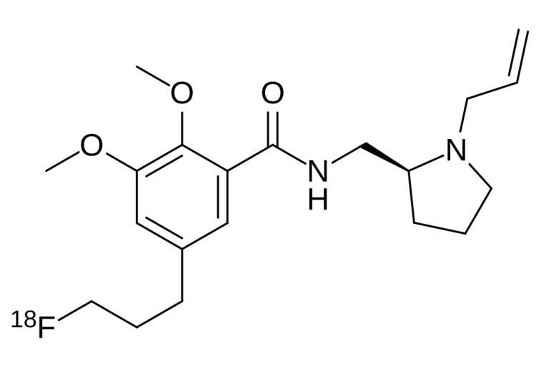 Keywords: Fallypride F18.svg Chemical structure of fallypride F18 Own 11 27 15 June 2014 UTC Ed Edgar181 200px Radiopharmaceuticals Benzamides Organofluorides Allyl compounds