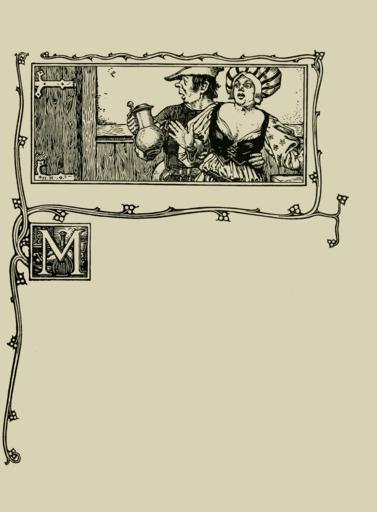 | Keywords: FamHis077.png en A historiated letter M featuring a bottle of wine a goblet a roast capon and a medieval glass window surrounded by ornaments text dividers and an image of Goodman Stumpe the Tooth-drawer and the woman of the house at the moment they hear her husband coming home <br><br> She kindly thanked him and presently did as he bad her they were not scarce set at the table but her husband returning backe knockt at the doore The woman hearing this was amazed p 78 1904 https //archive org/details/famoushistoirieo00thom Early English Prose Romances III Fryer Bacon Edinburgh Otto Schulz Co https //archive org/stream/famoushistoirieo00thom page/n76/mode/2up p 77 a reprinting of William Thoms's 1828 edition of an English prose romance available in manuscript by 1555 and first printed in 1627 Anonymous William Thoms editor other versions <gallery> File FamHis077initM png Cropped initial M File FamHis077pic png Cropped picture </gallery> PD-1996 PD-1923 PD-EU-no author disclosure LlywelynII The Famous Historie of Fryer Bacon Harold Nelson Historiated initials Decorative letters Chickens in art Wine in art Windows in art Cups in art M as an initial Dentists in art Leaves in art Vines Corsets in art Wives in art Adultery Hats in art Flagons Doors in art Fat people in art Middle aged Walls in art Dresses in art Tunics Tricorne hats in art Belts in art |
