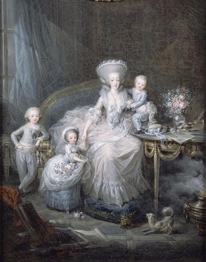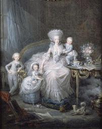 | Keywords: Famille de la comtesse d'Artois.jpg Artwork Creator Charles Emmanuel Leclerq Maria Theresa of Savoy comtesse d'Artois wife of the future Charles X of France; the dukes of Angoulême and Berry are with their sister Sophie century 18 oil on canvas cm 47 40 Institution Versailles http //www photo rmn fr/cf/htm/CPicZ aspx E 2C6NU0HW3SPD Info http //madameguillotine org uk/2009/08/16/comtesse-dartois/ Pic Other versions PD-old-100 Charles Emmanuel Leclercq 18th-century portrait paintings in the Musée national du Château de Versailles 1779-80 Princess Maria Theresa of Savoy Charles Ferdinand Duke of Berry Louis-Antoine Duke of Angoulême Sophie d'Artois 1780s portrait paintings 18th-century portraits at full length 1779-80 18th-century portrait paintings from France Big hair 18th-century portraits of children Female hair fashion in art 1779-80 French Royal Family during the French Revolution Mothers and children in art Family portraits of French rulers 1779-80 18th-century portrait paintings with dogs 1779-80 Skeleton suits Group portraits with 4 persons Images from Réunion des musées nationaux |
