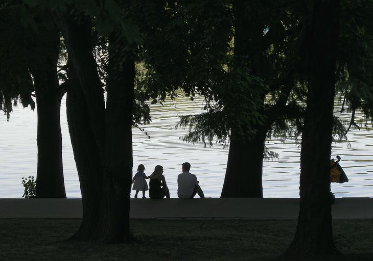 Keywords: family evening silence together mother father daughter trees lake park herastrau bucharest romania