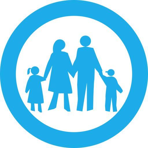 Keywords: family parents kids children young youth man woman girl boy mom dad mother father son daughter two kids four people together unit blue silhouette round frame circle circular parenting parenthood lifestyle happy happiness relationships