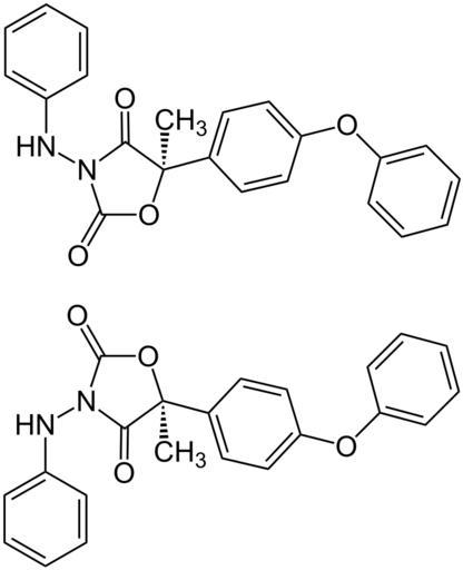 Keywords: Famoxadone Structural Formulae V.1.svg en Famoxadone_Structural_Formulae de Famoxadon_Strukturformel own Jü Cc-zero Oxazolidinediones Fungicides Racemic mixture