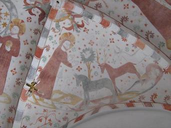 Keywords: Fanefjord God horse ox hare.JPG en Fanefjord Church Møn Denmark Fresco of God creating beasts own Ipigott 2009-09-09 Creation in frescos Frescos in Fanefjord Church