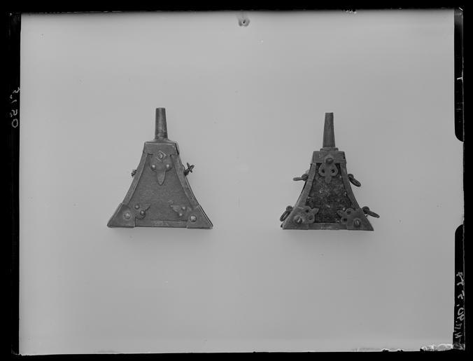 Keywords: Fängkruthorn, Tyskland, 1500-talets senare hälft - Livrustkammaren - 27888.tif LSH artwork sv Trapetsformig behållare av trä överklädd med brunt läder raka kantbeslag av Stål Trepassformiga beslag i hörnen på fram-och baksidan Sidopartierna har en ringskruv två öglor hänger i den ena <br/>Pip l 29 mm fastlödd vid locket som utgör ett stycke med toppbeslaget Locket fäst med en skruv fyrkantig mutter original caption century 16 g 67 size mm 90 98 37 LRK place of origin original filename LN_E00809 39560 inventory number LRK 2950 27888 CC0 Fängkruthorn Tyskland 1500-talets senare hälft - Livrustkammaren - 27888-negative tif Vessel container Media contributed by LSH 2015-11 |