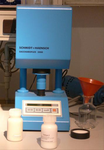 | Keywords: Farbtypenmessgerät 2004 Zucker-Museum.jpg Farbtypenmessgerät für feste Proben ersetzte den visuellen Vergleich von Zuckerproben mit Farbreihen Hersteller Schmidt + Haensch 2004 Zucker-Museum Berlin Leihgabe Schmidt + Haensch ausgestellt ist nur das Gehäuse Electronic reflectance-meter for the automatic color grading of cristallized sugar own 2008-05 Photo User FA2010 Zucker-Museum Berlin Measuring instruments Laboratory equipment Sugar industry Schmidt + Haensch | ||||