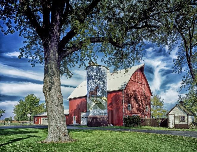 Keywords: farm barn rural illinois landscape scenic silo sky clouds grass country hdr nature outside architecture painting on barn