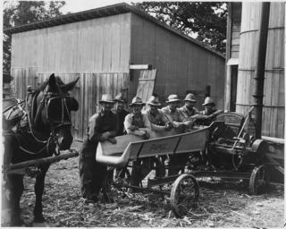 Keywords: Farm Security Administration, Seven of eight farmers shown with their cooperativelyowned ensillage cutter on the... - NARA - 195847.tif Scope and content General notes 195847 Local identifier Roosevelt Franklin D Franklin Delano 1882-1945 Franklin D Roosevelt Library NLFDR 4079 Albany Post Road Hyde Park NY 12538-1999 ca 10/1939 Record group Collection FDR-PHOCO Franklin D Roosevelt Library Public Domain Photographs 1882 - 1962 Record group ARC 1184 Franklin D Roosevelt Library Public Domain Photographs compiled 1882 - 1962 Series ARC 195301 File unit File unit ARC Variant control numbers NAIL Control Number NLR-PHOCO-A-53227 545 yes Other versions NARA-cooperation PD-USGov Farm Security Administration |