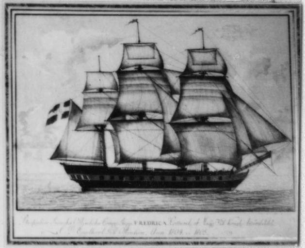 Keywords: Fartygsporträtt - FREDRICA - Heland, I. F. - S 2751.jpg sv Fregattskeppet Fredrica Serie om fem akvareller i gemensam ram <br> Ram Förgylld</p> Avbildad - namn FREDRICA Avbildad - namn Engelhart C D watercolor Sjöhistoriska museet Stockholm object history sv Nummer 5 Skeppet efter reparation och omriggning förande alla segel bidevind med röjlarna hängande i lä om bramseglen Skrovet målat i svart och rött Kompaniets flagg under gaffeln exhibition history credit line Signatur I F Heland Påförd text Respektive Svenska Ostindiska Comp Skepp Fredrica Commend af Maij Vid Kongl Amiralitetet C D Engelhard Till Ostindien Åren 1804 -1805 accession number http //digitaltmuseum se/011024829522 S 2751 place of creation Institution Sjöhistoriska museet SMM cooperation project S 2747 S 2748 S 2749 S 2750 S 2751 PD-old-70-1923 Sjöhistoriska museet Images from Sjöhistoriska museet Swedish East India Company |
