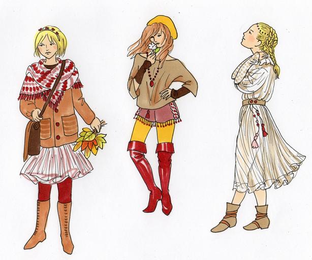 Keywords: fashion fall fashion clothing woman girl autumn boots dress colorful fashion drawing drawing