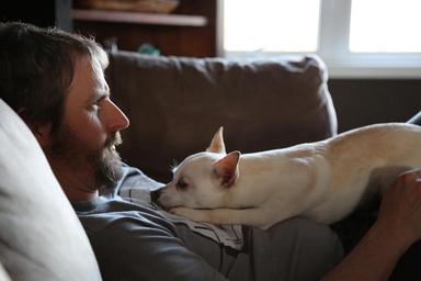 Keywords: father dog chill father's day downtime puppy relaxing