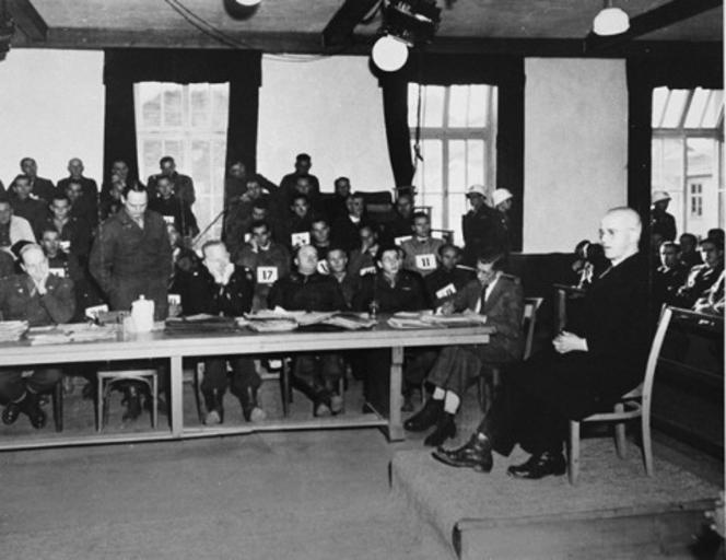 Keywords: Father Johann Maria Lenz.jpeg en Father Johann Maria Lenz a former inmate of Dachau testifies at the trial of former camp personnel and prisoners from Dachau Lenz was commissioned by the Vatican to write a book about the camp USHMM courtesy of National Archives and Records Administration College Park - Photograph 11453 Gasiewicz 1945-11-29 Copyright Public Domain The Dachau concentration camp trial opened on November 2 1945 in Dachau Germany Forty individuals who had participated in the operation of the Dachau concentration camp were charged with the murder and mistreatment of foreign nationals imprisoned there Among those charged were Martin Gottfried Weiss the camp commandant from 1942-1943; Dr Klaus Karl Schilling an SS physician who was brought to Dachau to find a method of immunizing people against malaria; and three former prisoners The trial lasted from November 15 to December 13 1945 with seventy witnesses called for the prosecution and fifty witnesses called for the defense All forty defendants were found guilty with thirty-six being sentenced to death by hanging including Weiss and Schilling one sentenced to hard labor for life and three sentenced to hard labor for ten years A few of the sentences were reduced after a review board determined the defendants were involved to a lesser degree than originally believed but most were upheld Those sentenced to death were hanged on May 28-29 1946 at Dachau PD-USGov Dachau trial |