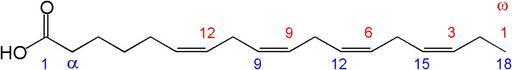 | Keywords: Fatty acid numbering.png en Chemical structure of stearidonic acid showing numbering conventions created with ChemDraw own User Edgar181 Edgar181 Imported from en Wikipedia by Foobar Stearidonic acid Chemical structures to explain nomenclature |