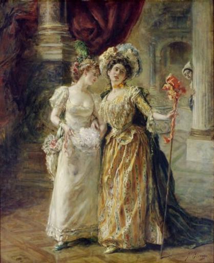 Keywords: Fausto Giusto At the theatre.jpg by 1941 oil on panel cm 55 2 45 1 object history credit line F Giusto signature accession number Christie's online 5211959 PD-old-100 Fausto Giusto Rococo revival paintings