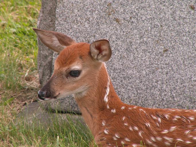 | Keywords: Fawn, Odocoileus virginianus, United Cemeteries, 2015-06-08. 05.jpg en A White-Tailed Deer Odocoileus virginianus fawn resting against a monument in the Rosemont Mt Hope Evergreen United Cemeteries Ross Township Allegheny County Pennsylvania 2015-06-08 13 54 40 own Cbaile19 other versions cc-zero Odocoileus virginianus juvenile Uploaded with UploadWizard | ||||