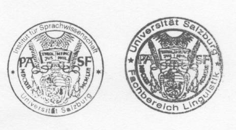 Keywords: FB Linguistik - Stempel.tif University of Salzburg Austria Universität Salzburg own Eweht 2012-10-28 Universität Salzburg Rubber stamp imprints Seals of Salzburg Cc-zero